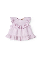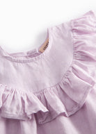 Sleeveless top for baby in an airy and comfortable linen quality, with a loose fit and wavy ruffle details. The top has a button closure at the back.