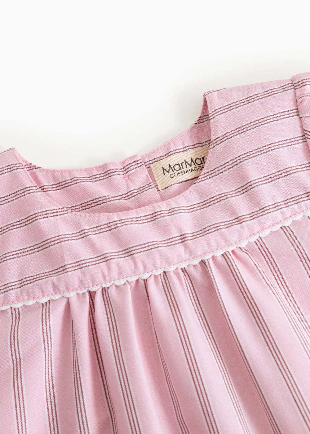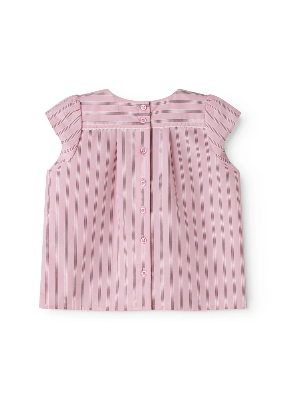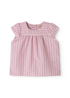 Short-sleeved and loose-fitting t-shirt for children with a good fit. The t-shirt has fine stripes and closes with buttons on the back. The t-shirt is both comfortable, crispy, light and airy to wear.