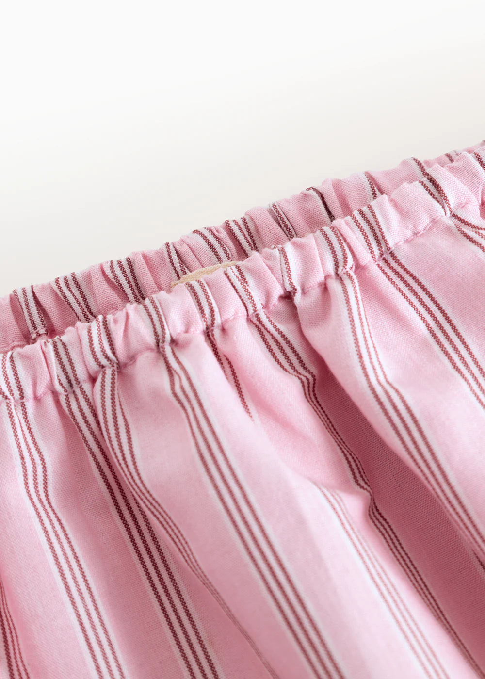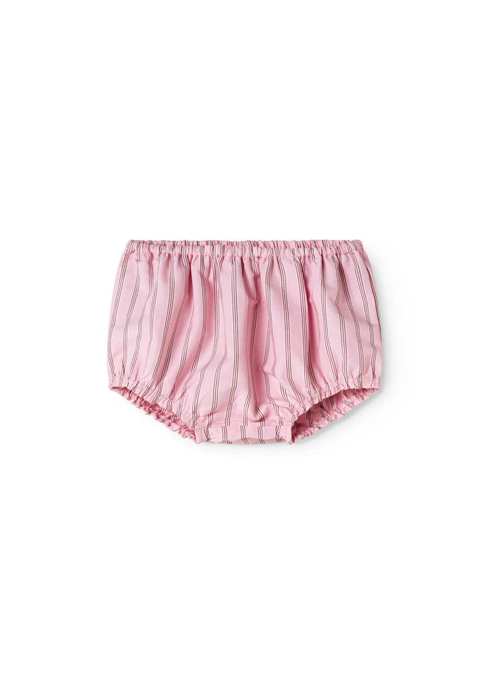 Small, loose-fitting baby bloomers with a comfortable elastic waistband. The bloomers have nice stripes and are both comfortable, crispy, light and airy to wear.