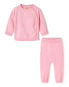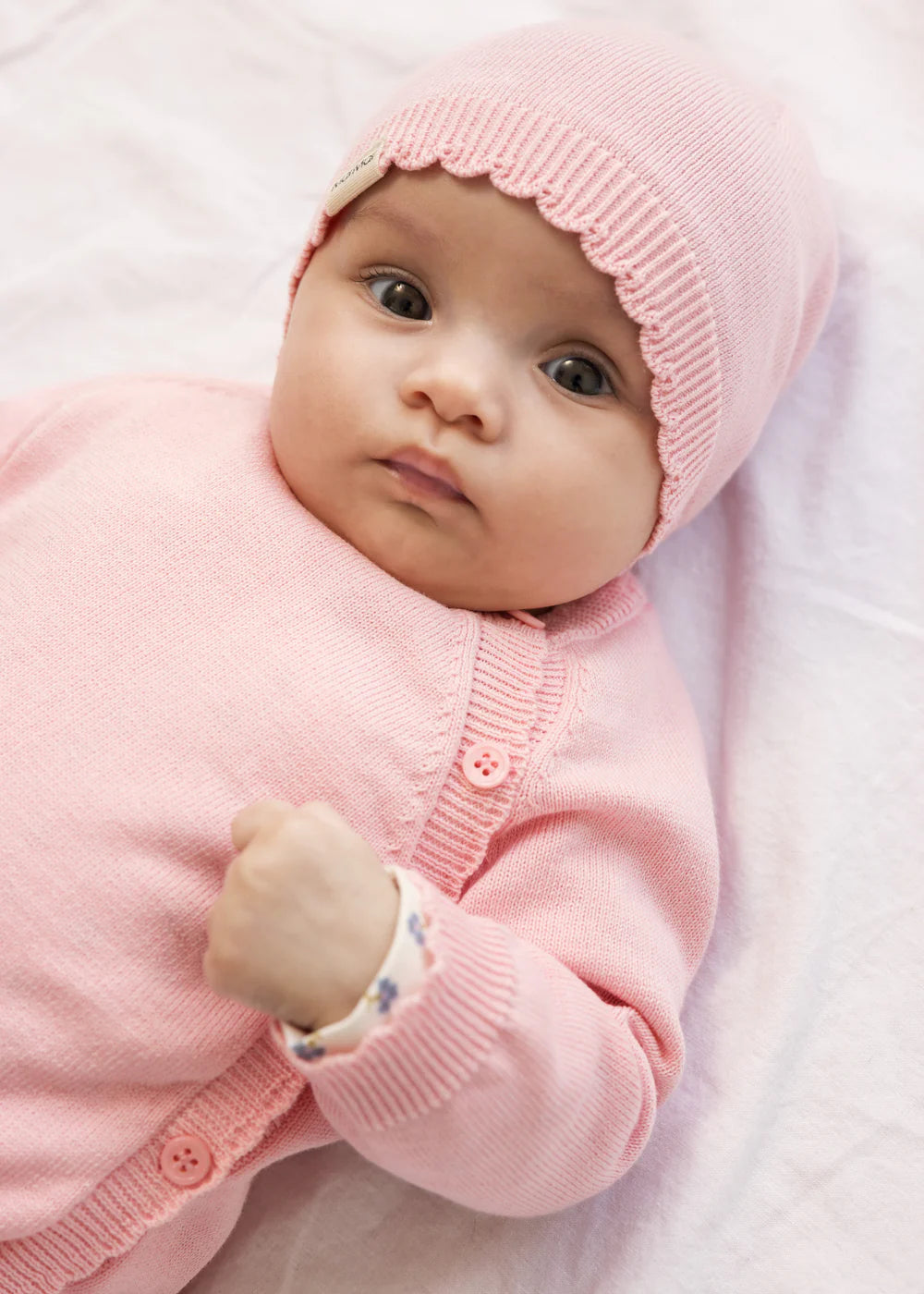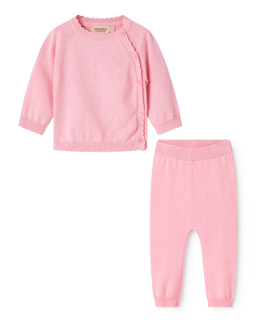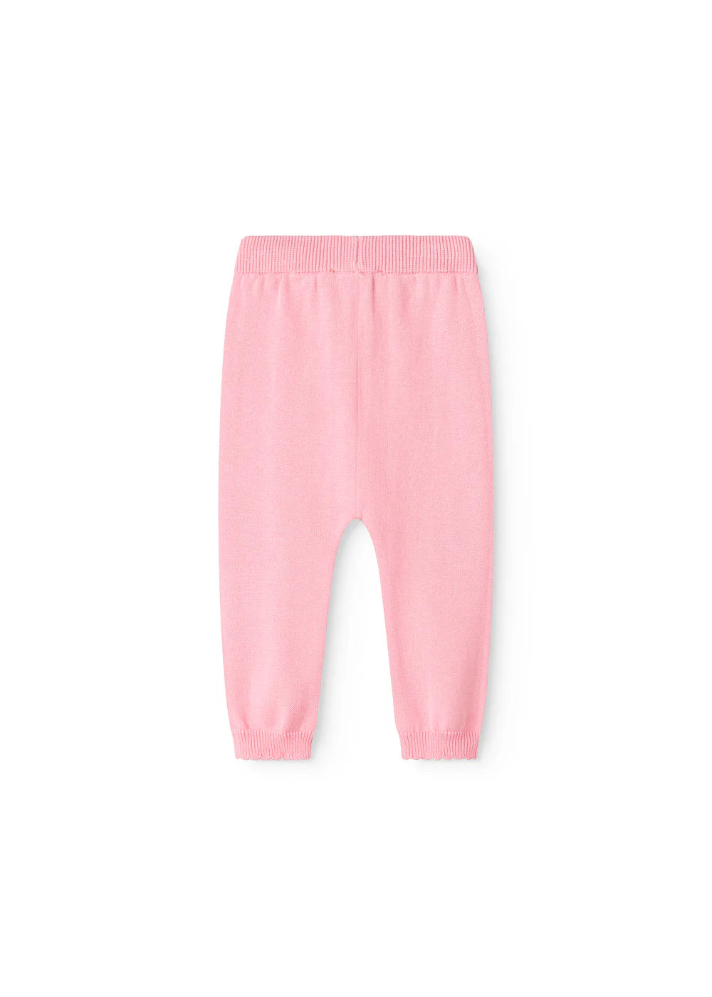 Knitted trousers for the little ones with elastic at the waist. The trousers are made of a stocking stitch and are comfortable and easy to wear.
