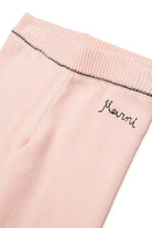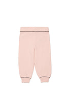 Knit pants with embroidered logo on the front. A soft garment with a minimalist design, featuring contrasting details at the waistband and cuffs.