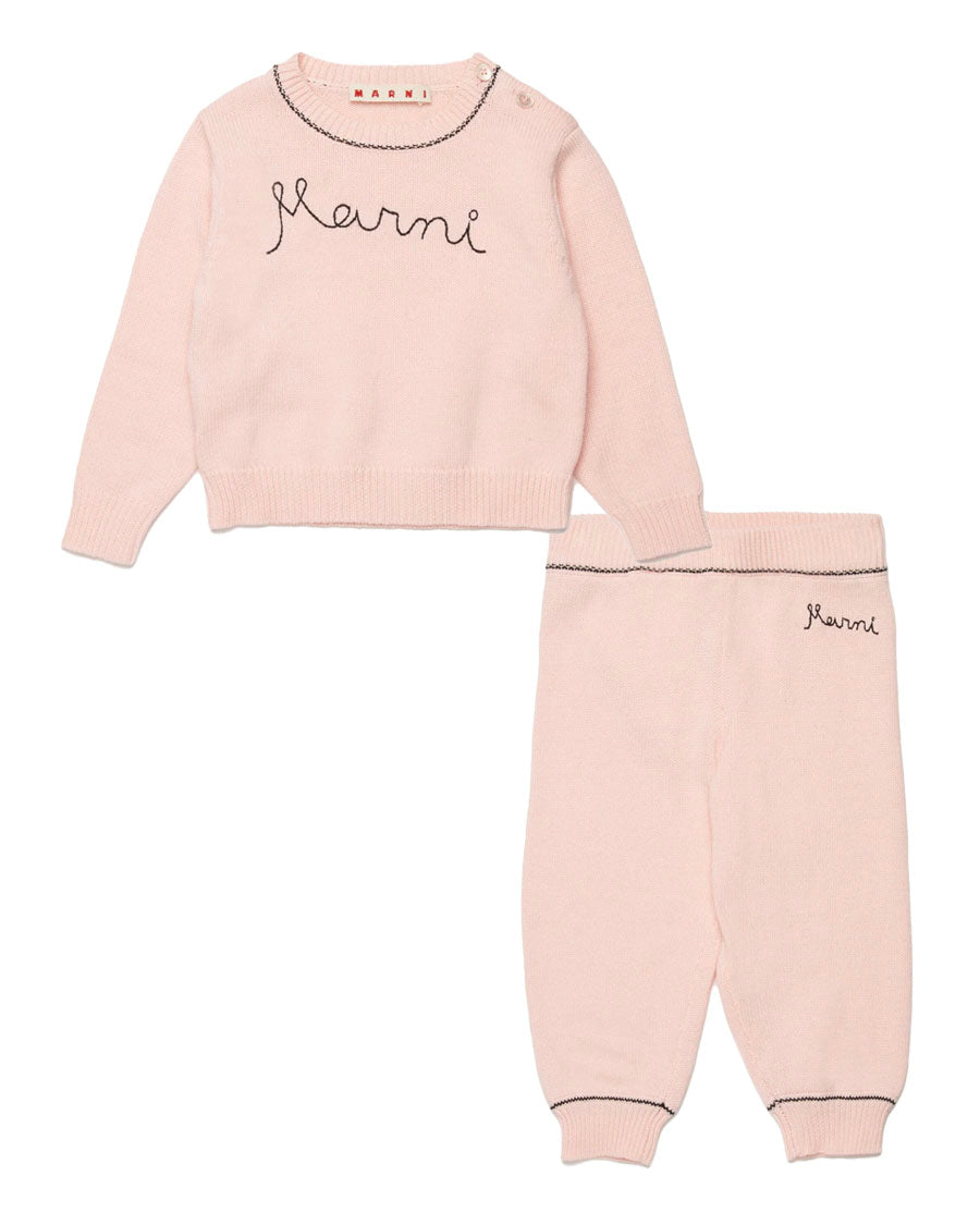 Knit Crewneck Pullover & Pants Set - Pink