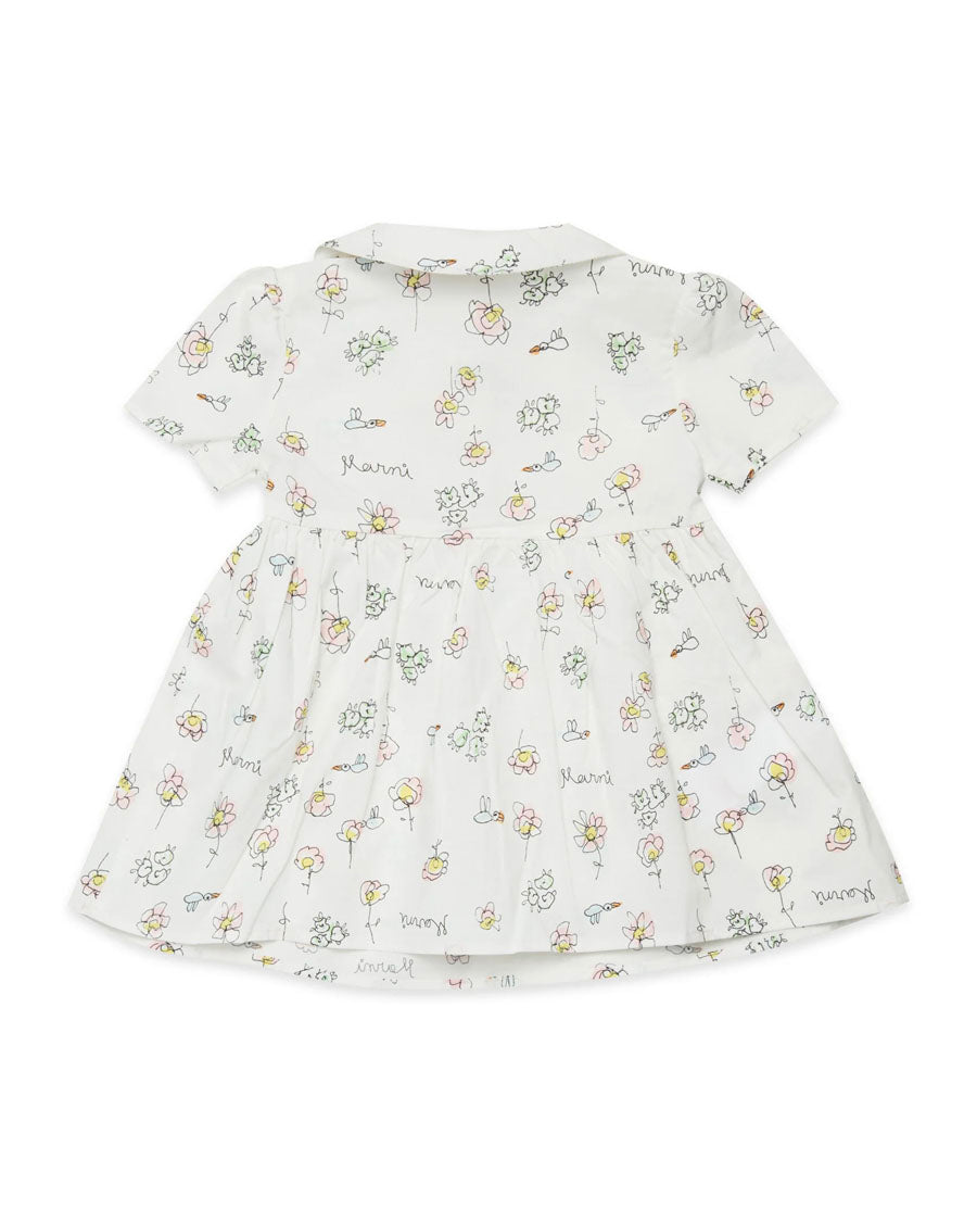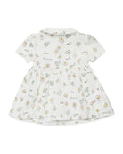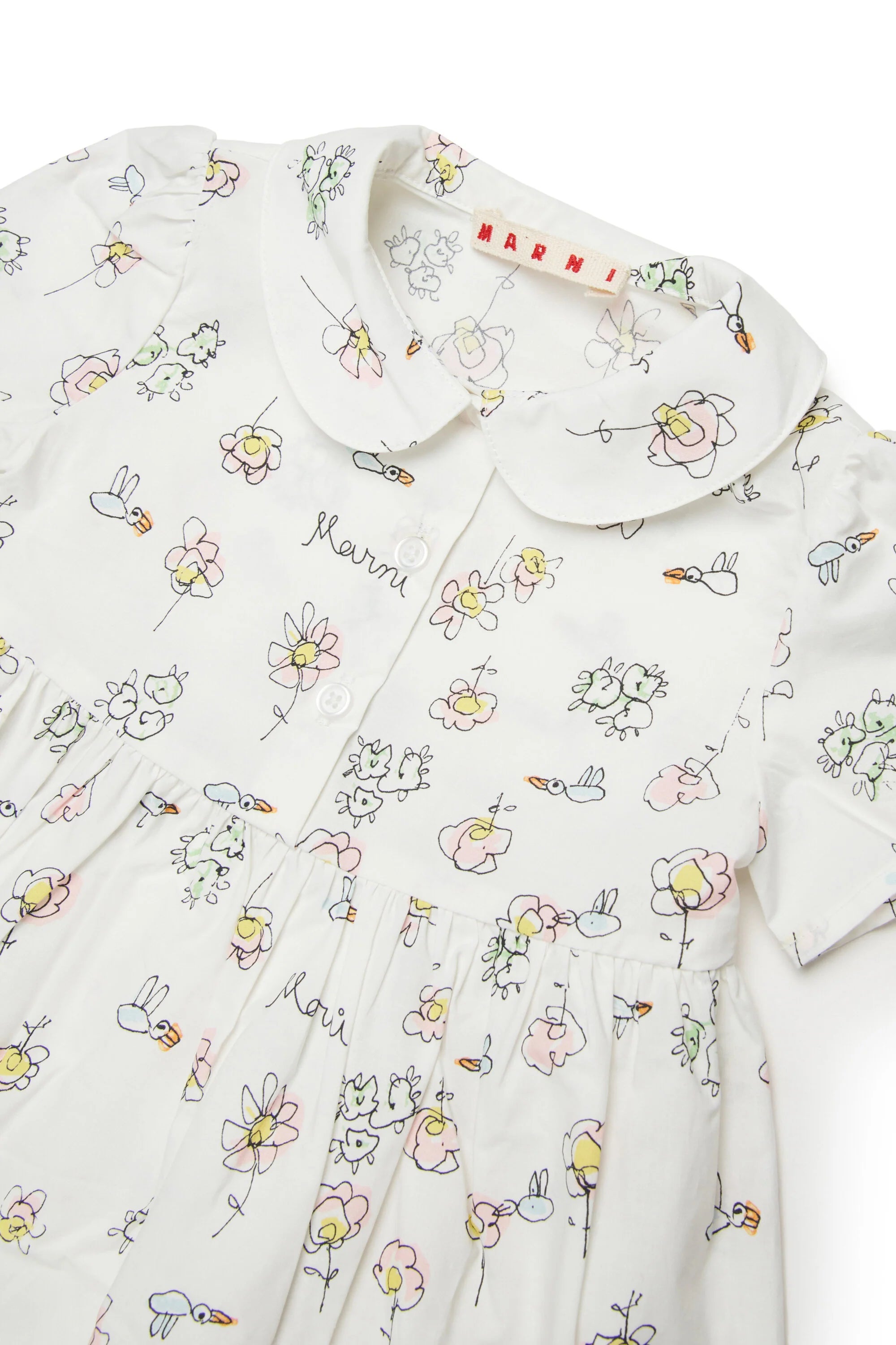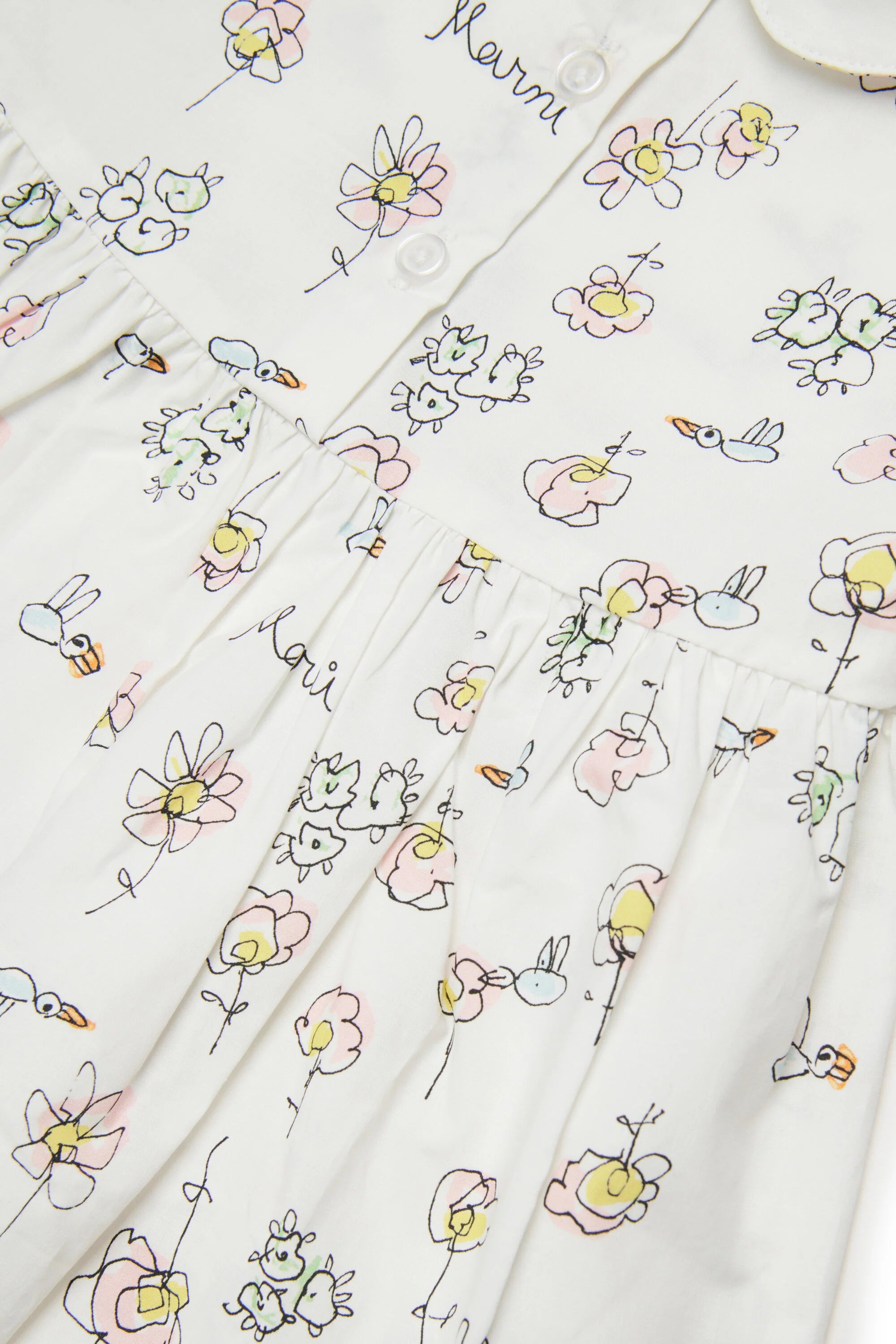 Short dress with all-over logo and floral print, featuring a rounded collar and short sleeves.