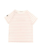 Blush pink and soft white stripes create a minimalist, classic look on this regular-fit top. Designed with a crew neckline, short sleeves, and functional snap buttons at the shoulder, it offers effortless style ideal for everyday wear or relaxed casual outings.