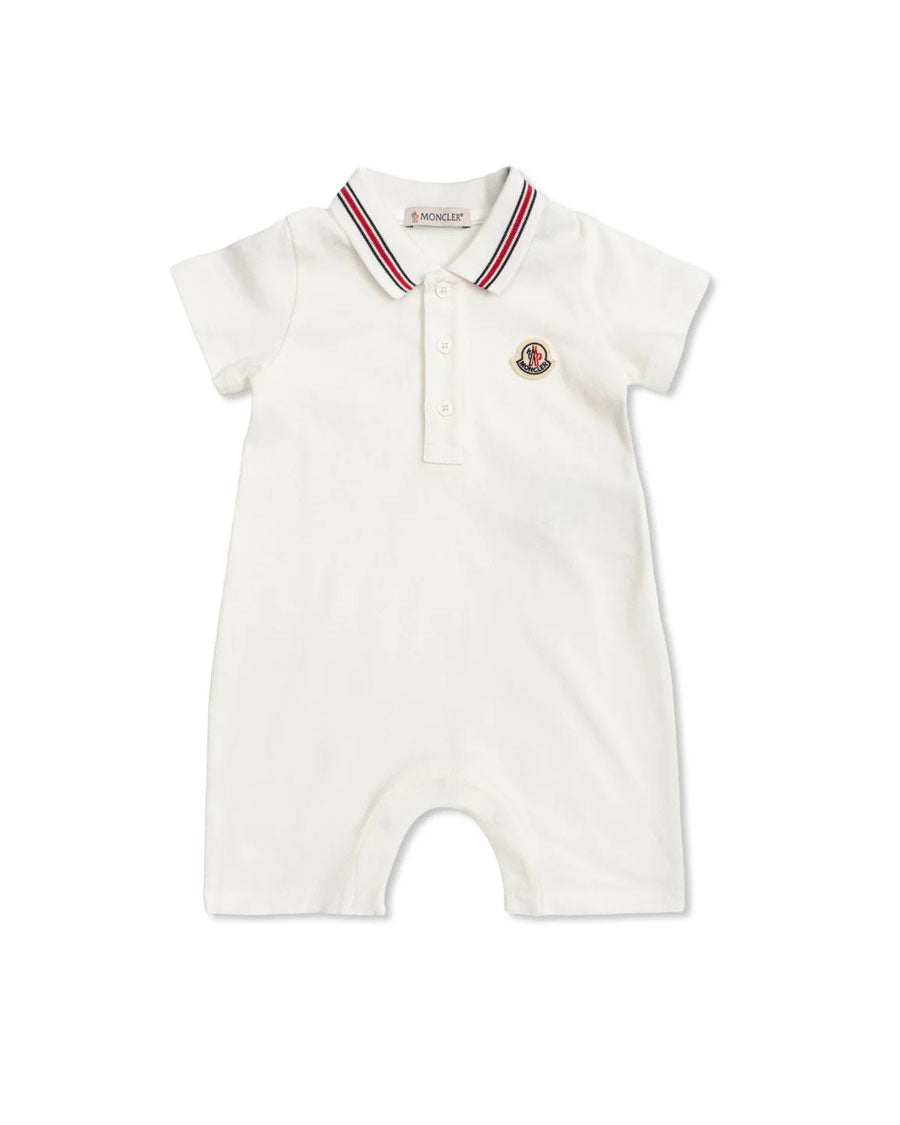 Logo Patch Polo-Collar Romper - White