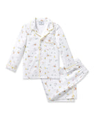 Playful bunnies and baskets full of goodies are hand-illustrated into the Easter Frolic print, brand new for the spring collection. This classic pajama set is accented with piping and finished with buttons.