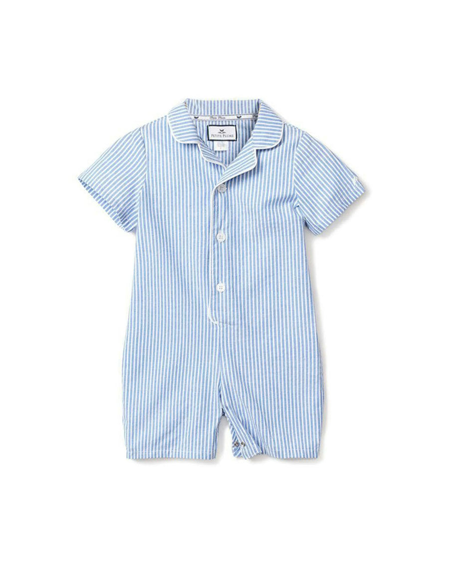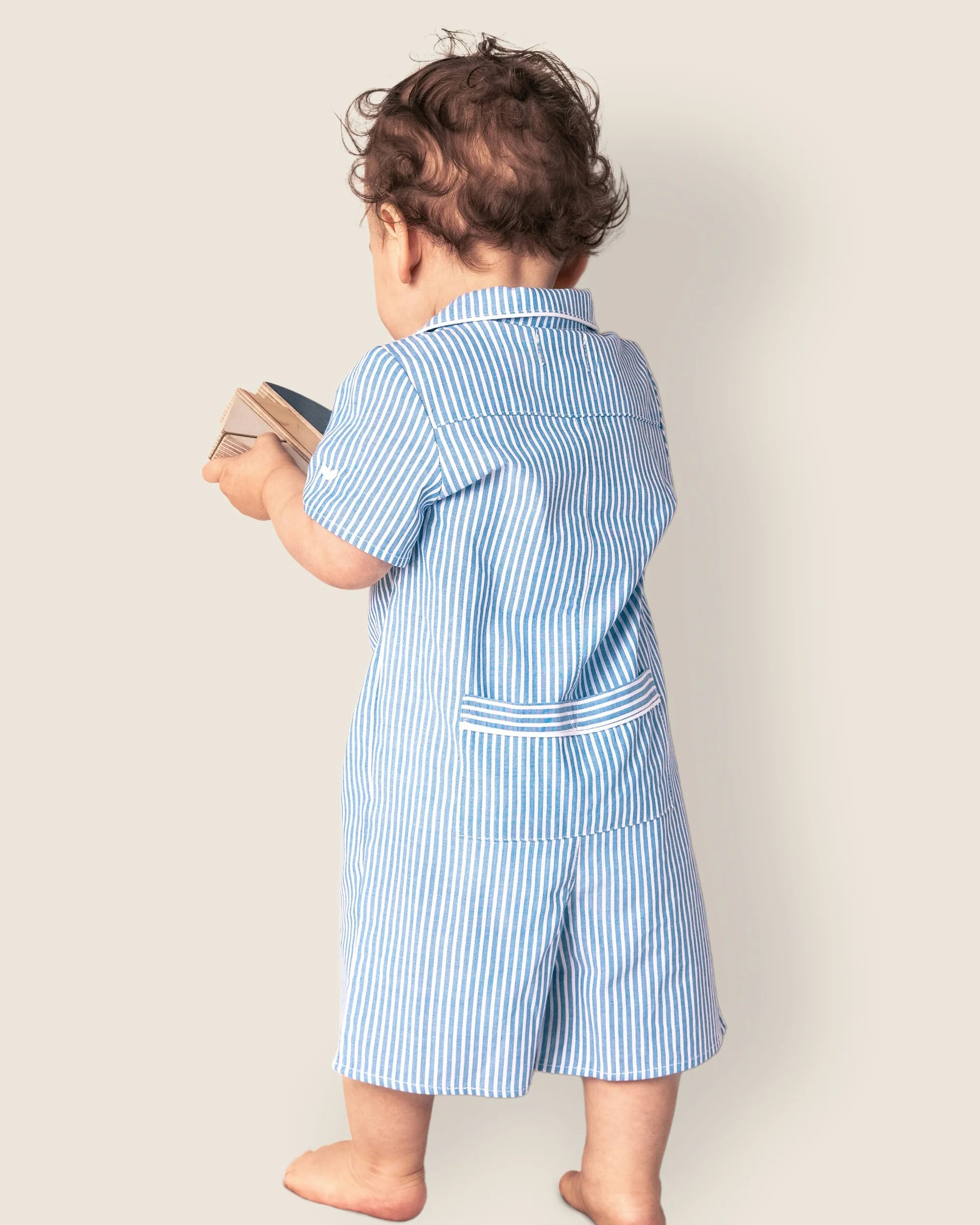Our Summer Romper is made of the softest brushed twill fabric which will allow your little one to walk, crawl, or relax in comfort. The sleepwear is made from the finest quality yarn-dyed cotton and blended with just enough inherently flame retardant fiber to allow it to pass strict CPSC flame retardant laws without using harmful chemicals. The fabric is brushed for added softness, making the sleepwear feel absolutely luxurious, getting cozier after each wash. In our luxurious sleepwear, your little one will be tucked in love and off to dreamland. Bonne nuit.