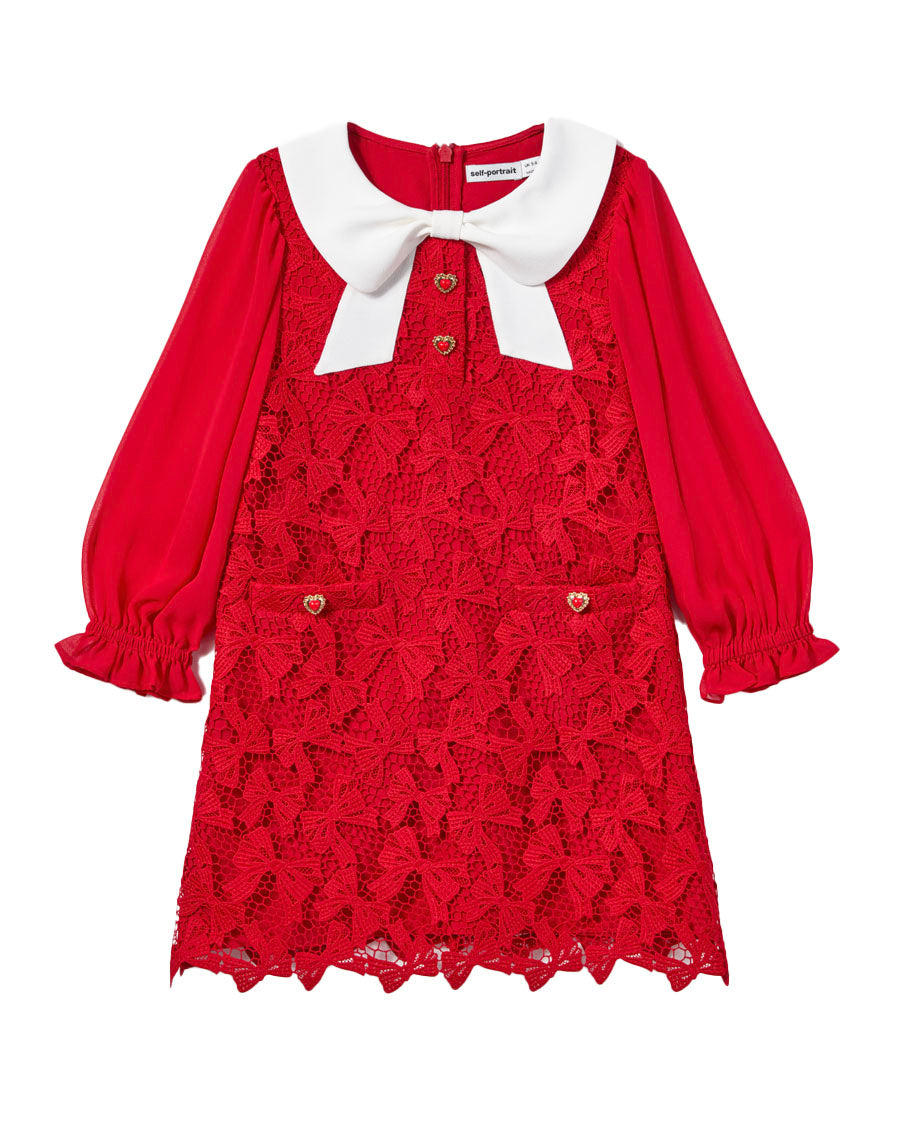 Red Bow Lace Dress - Red