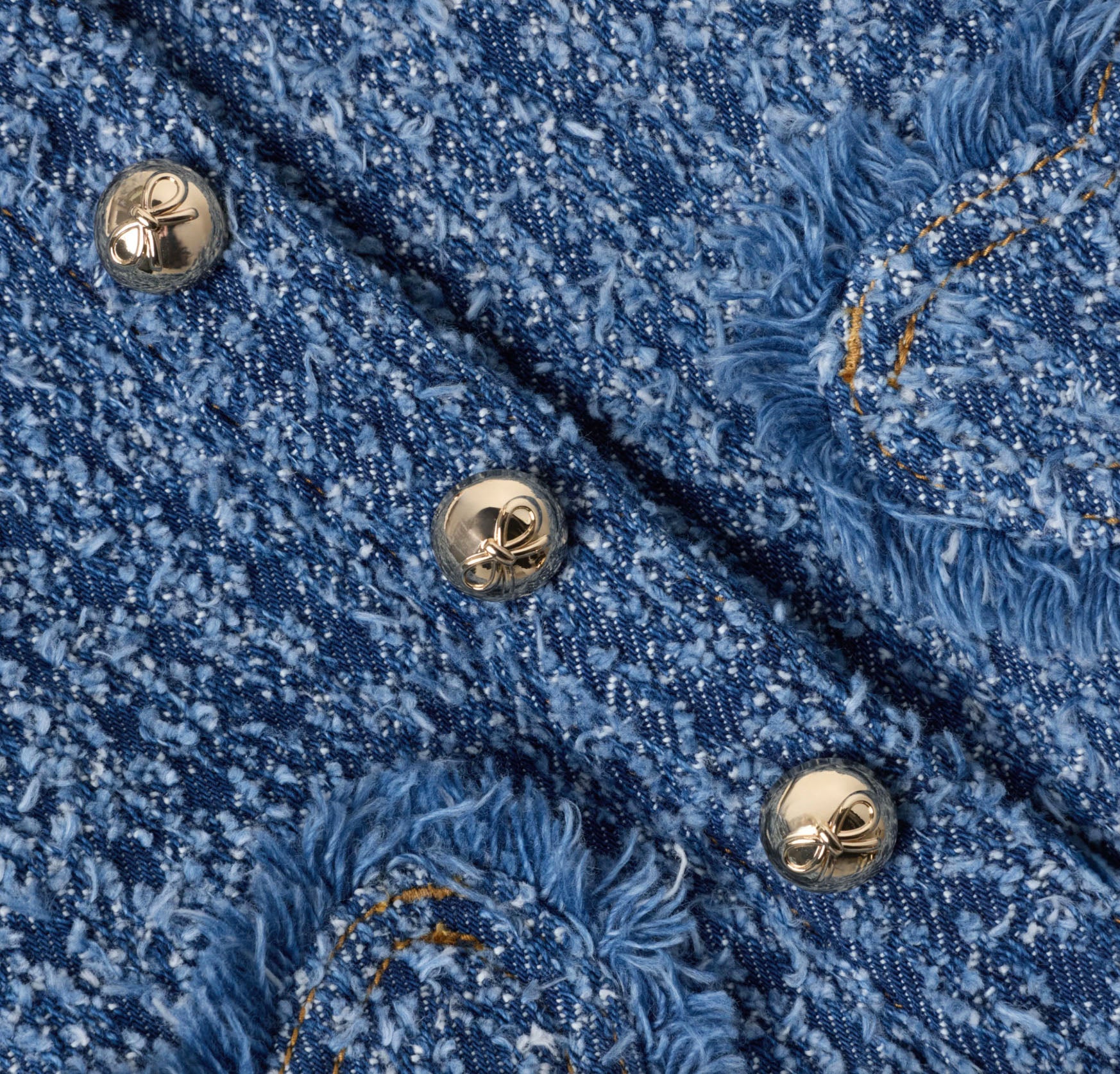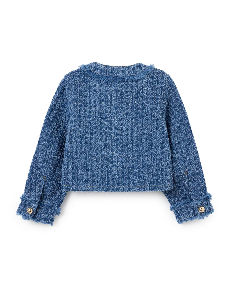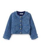 Crafted with care, this denim jacket features heart-shaped pockets with rich textured trim for an adorable touch. Bow-topped gold buttons add shining detail – ready for a stylish day out.