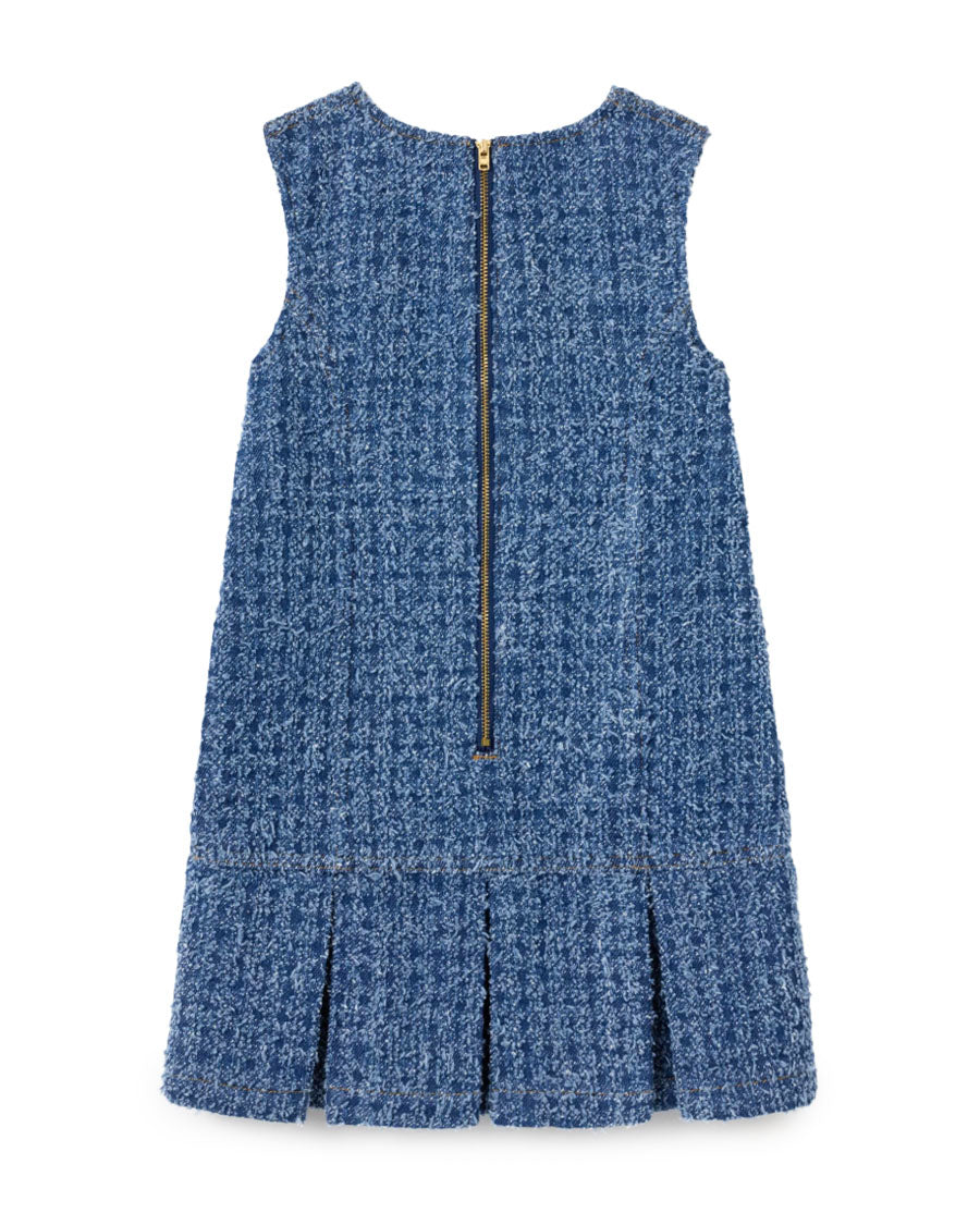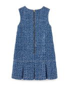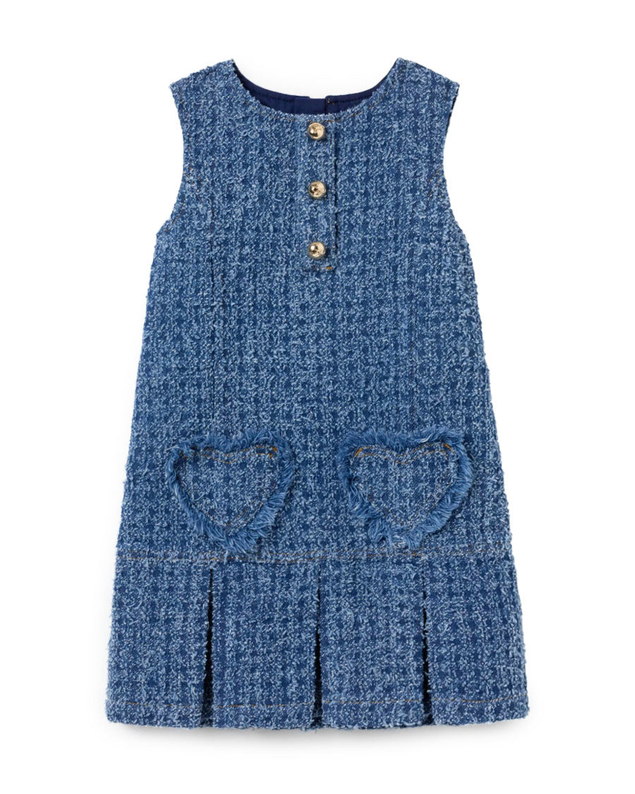 Crafted with care, this dress boasts heart-shaped pockets with rich textured trim for an adorable touch. Bow-topped gold buttons lend shining detail – add our embellished headband for a play date.