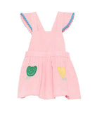 The Stella McCartney Kids baby girl's pink dress with ruffle details is made of 100% cotton, it features a pink ruffle trim and a gathered hem.