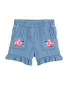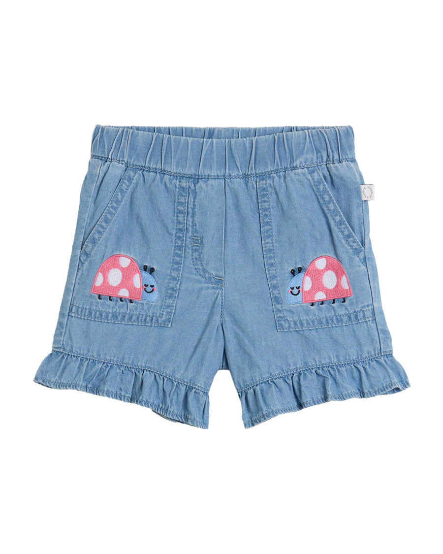 Chambray Shorts w/ Ladybug Embroidery - Blue