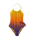 The Victoria one-piece swimsuit from SUNCHILD captures the radiance of Mediterranean sunsets. Its gradient from orange to shimmering purple creates an enchanting, luminous effect, while its flattering cut ensures optimal comfort with every movement. Ideal for shining at the beach or pool with a unique and magical style.