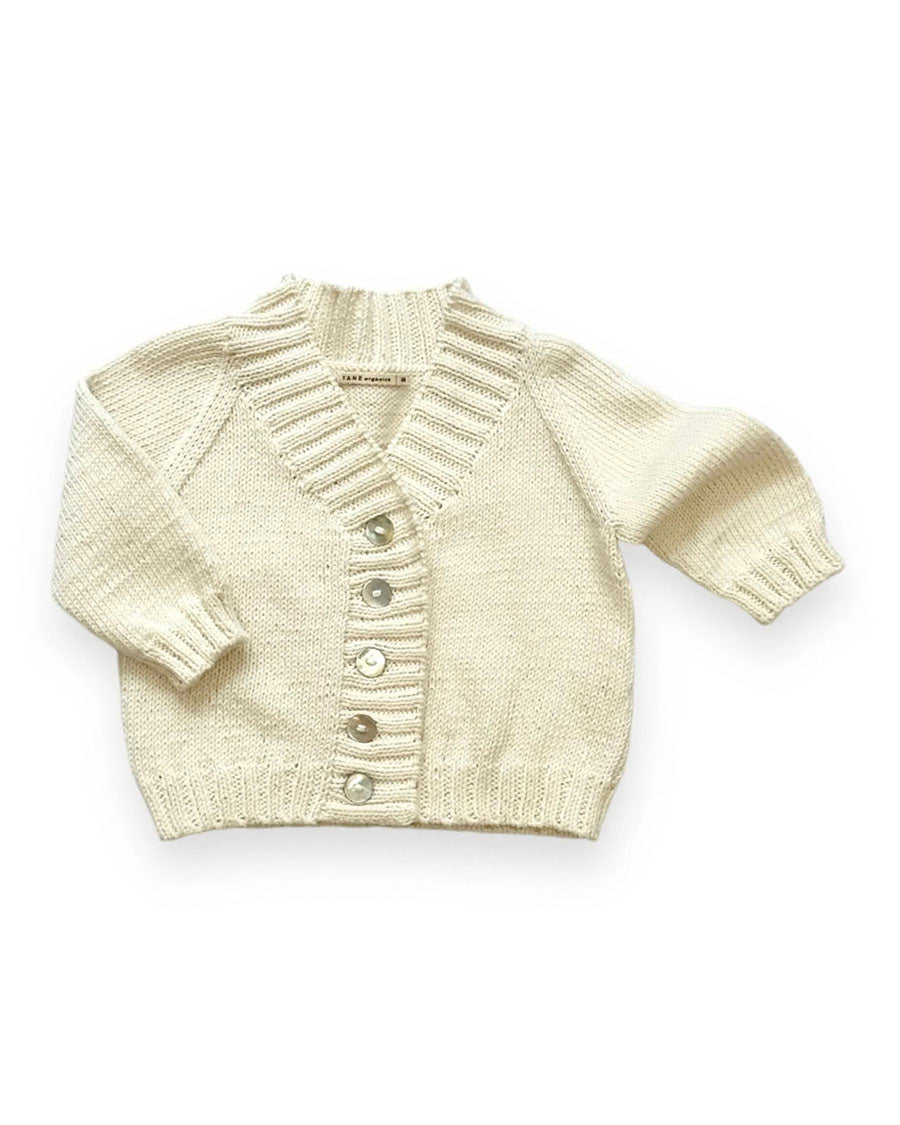 Hand knitted by women artisans in the Peruvian high lands, each cardigan is preciously knitted with love. The intentionally designed high neck trim is perfect to envelope your little one comfortably. Adorned with natural shell buttons and available in undyed color ecru only, this heirloom cardigan is beautifully hand knitted with GOTS certified organic cotton. Sustainable luxury means intentional, lasting, and memorable.