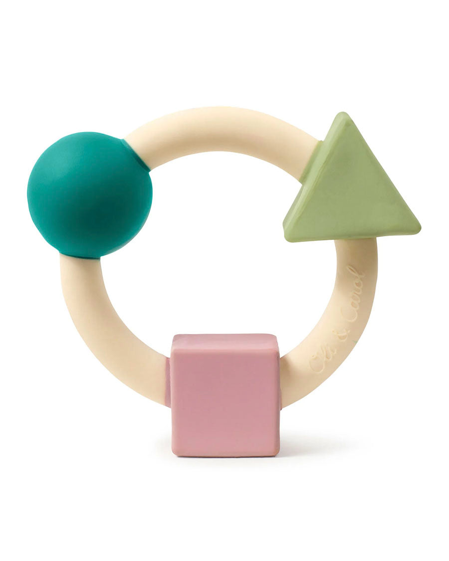 The Bauhaus Teething Ring is a design driven natural rubber toy that easy to grasp and teeth on.