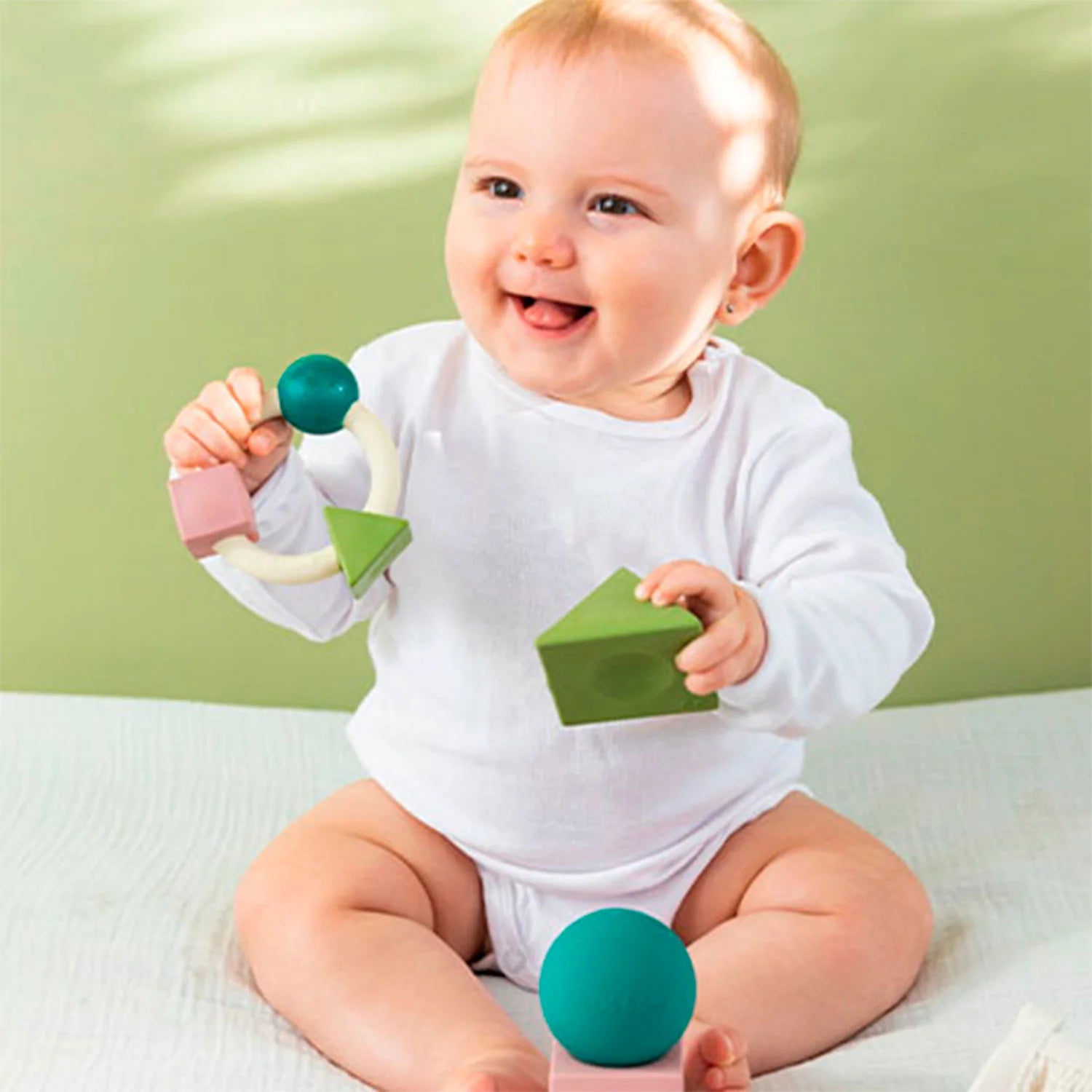 Designed with geometric figures and pastel colors to help babies learn their first shapes & colors - all while soothing achy gums.