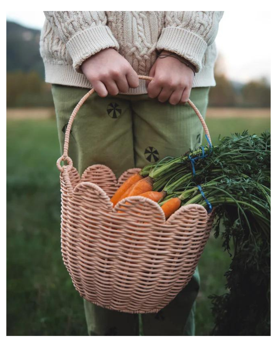 Fill your nursery, play space or market mornings with flowers (that live on forever) with our Rattan Tulip Carry Basket! This woven basket with a whimsical scalloped edge and convenient carry handle is designed to tote around in and out of the home. Fill with essentials, toys, dummies, nappy cream and everything in between.