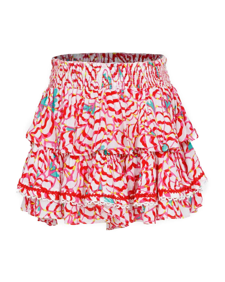 The Kids Mini Skirt Ariane, a stylish kids' version of the corset-inspired favourite. This mini design is accented with successive ruffles, an elastic waistband and colored piping details. It's a chic and mini design that effortlessly embodies style.