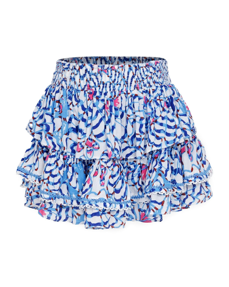 The Kids Mini Skirt Ariane, a stylish kids' version of the corset-inspired favourite. This mini design is accented with successive ruffles, an elastic waistband and colored piping details. It's a chic and mini design that effortlessly embodies style.