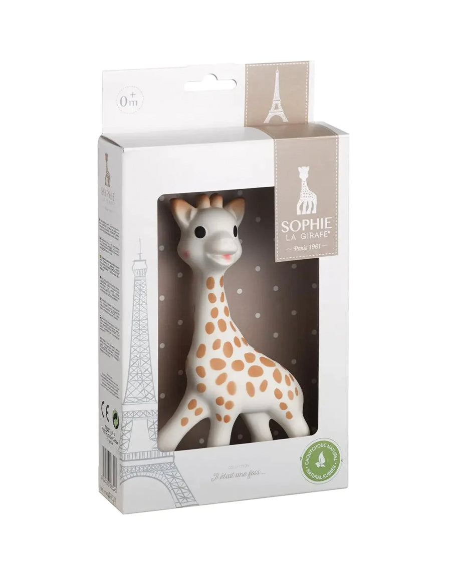Sophie la girafe, the most beloved teether for over 55 years! Inside each box, you’ll get: A booklet to discover more products. The Sophie story and on each box, there is a QR code to authenticate your Sophie.