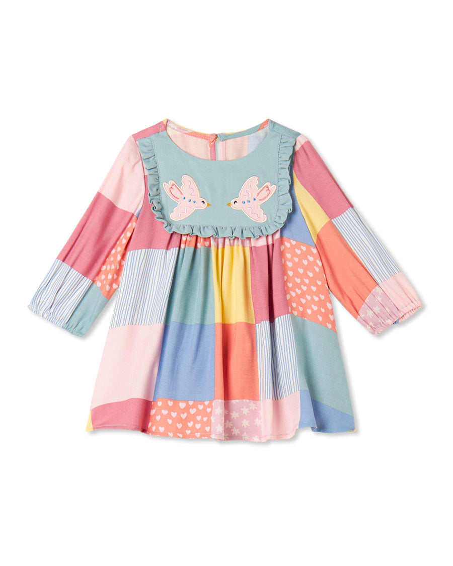 Longsleeve Patchwork Dress w/ Bird Patches - Multi