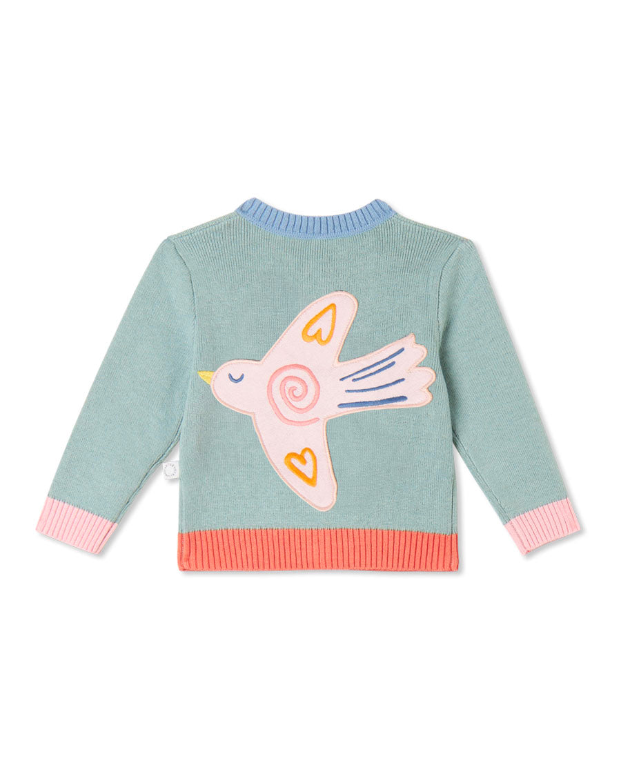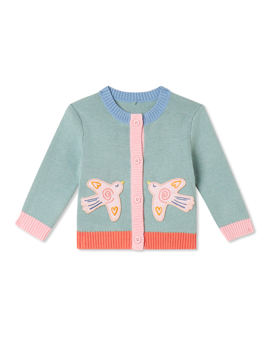 Cardigan w/ Bird Patches - Sage