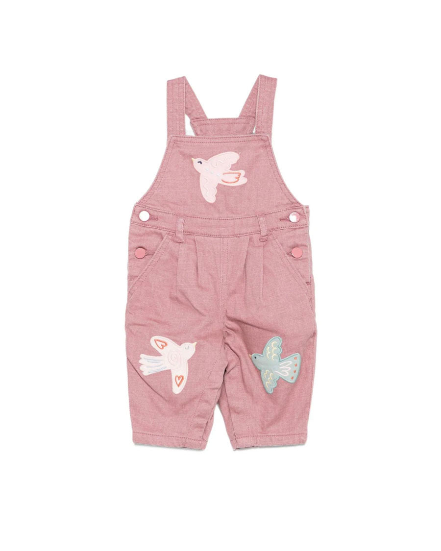 Gabardine Dungaree w/ Bird Patches - Raspberry