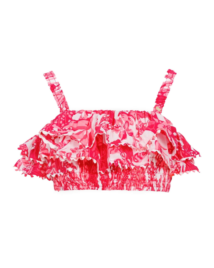 With its delicate ruffle accents, Kids Top Chiara is a swimsuit top that stands out in your little one's beach outfit. The elastic band ensures complete comfort and freedom of movement. Pair it with the matching bottoms for a chic beach resort aesthetic.