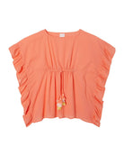 Lea Caftan w/ Pompoms - Neon Coral