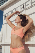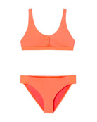 Acapulco Two Piece Swimsuit w/ Snaps - Neon Coral