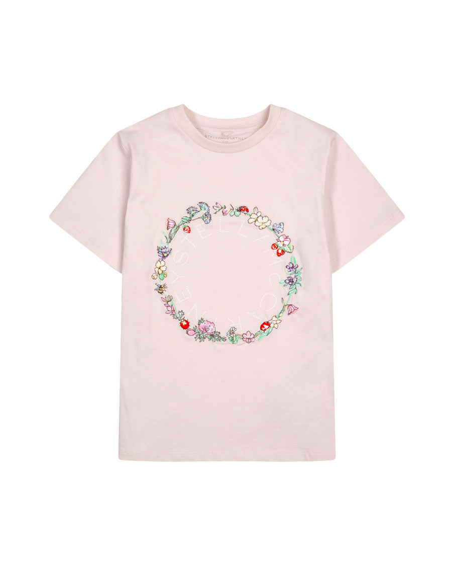 T-shirt for girls from Stella McCartney Kids in lilac and colorful. This model with a pleasant cotton quality that offers a high level of comfort for your your little one. The colorful floral embroidery also creates a playful playful character.