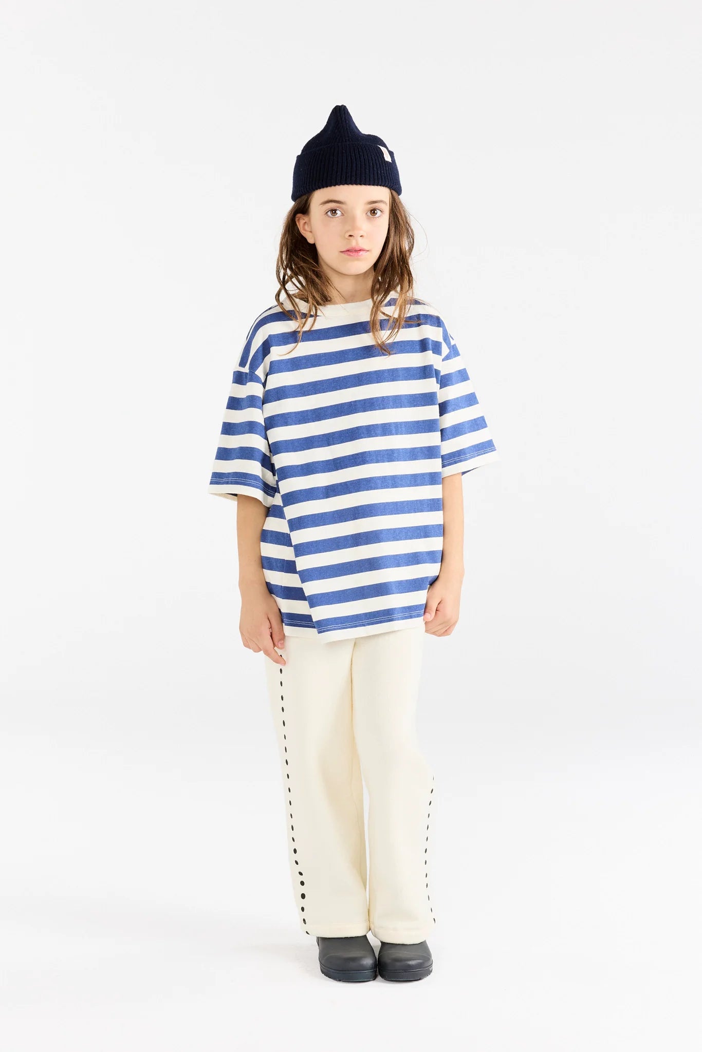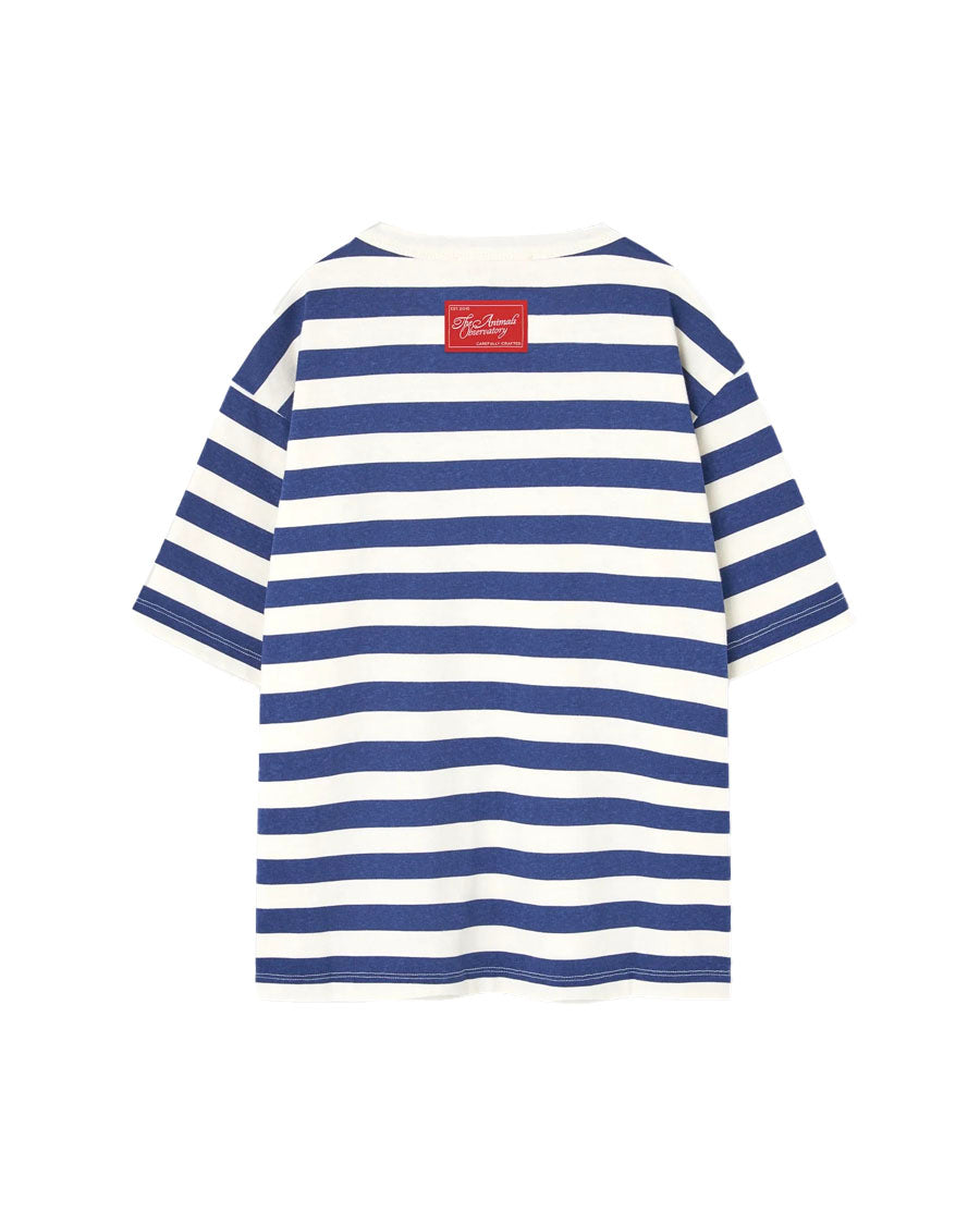 This nautical-inspired tee combines timeless navy stripes with a bold red logo patch at the back — a fresh take on fall winter 2025 trends for everyday kids clothing.