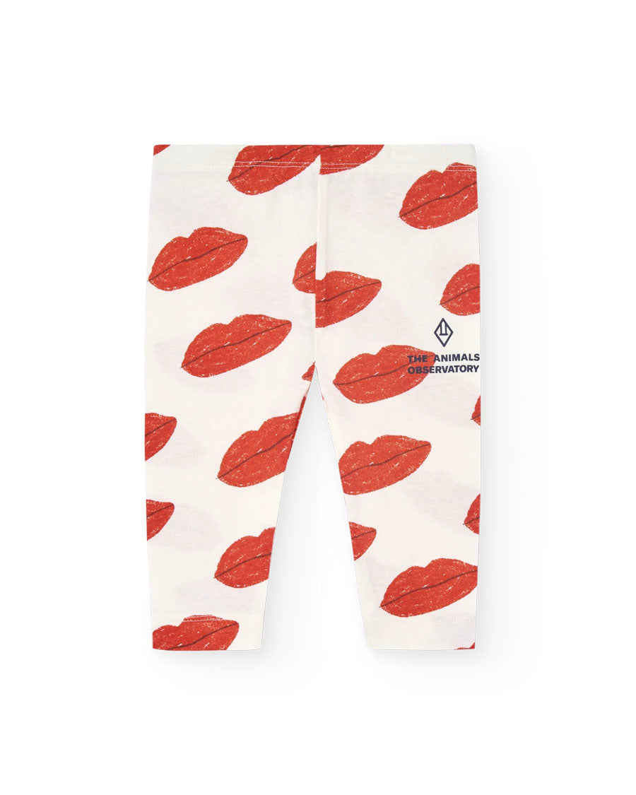 Baby leggings with an orange kissing print. Cute and comfy, ideal for layering.