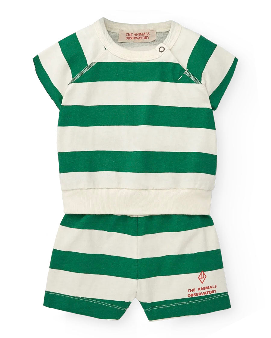 Baby set with green stripes. Land in sight, sailor! Stylish, playful, perfect for summer adventures.