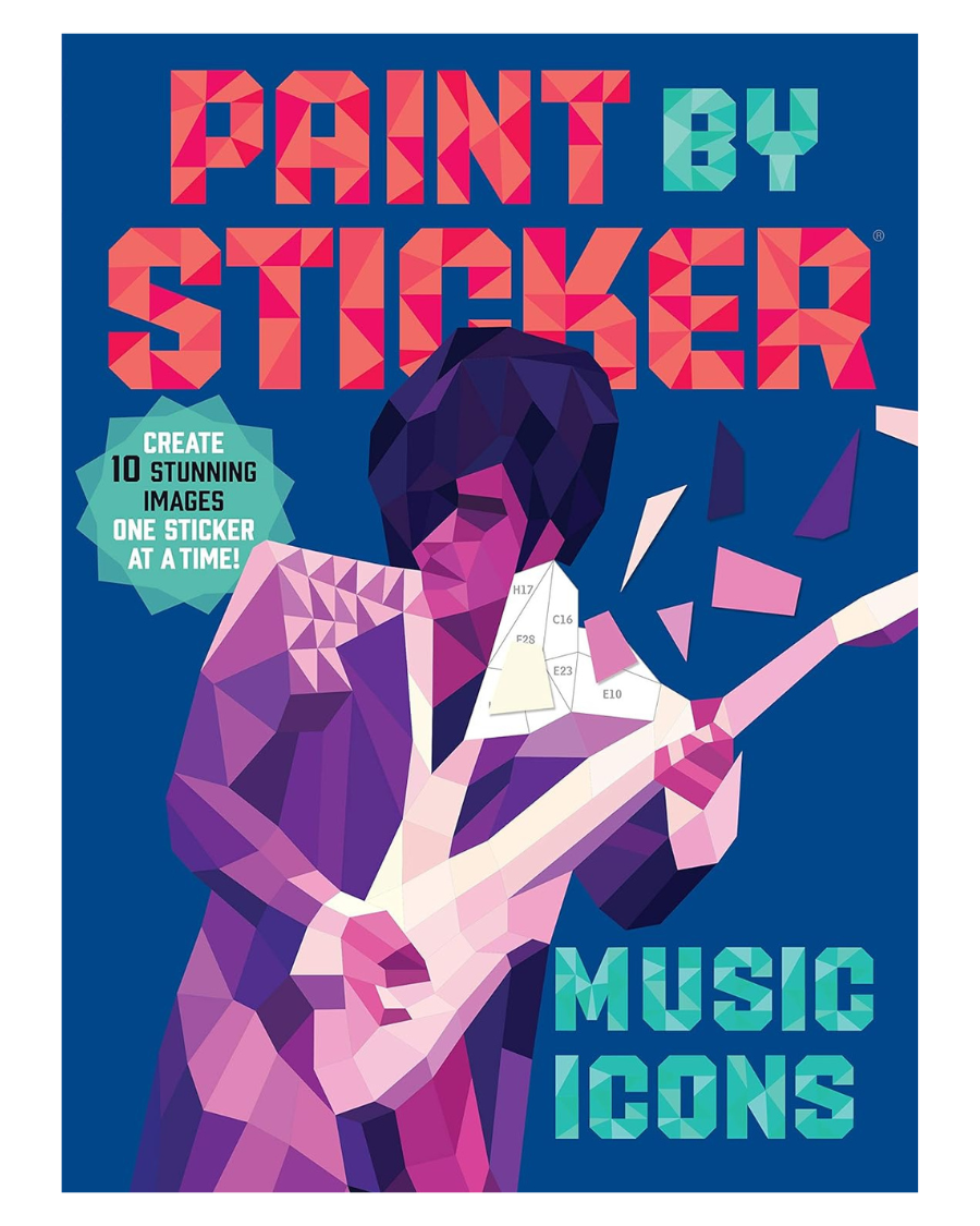 Paint by Sticker: Music Icons includes everything you need to create ten vibrant, full-color “paintings” of your favorite iconic musicians: Elvis, The Beatles, Beyoncé, Cher, Prince, Kurt Cobain, Madonna, Nina Simone, Dolly Parton, and "Weird Al" Yankovic. Find the sticker, peel it, and place it in the right space. Add the next, and the next, and the next—it’s an activity that’s utterly absorbing, both in the pleasure of peeling and sticking and the growing satisfaction of watching a “painting” come to life.