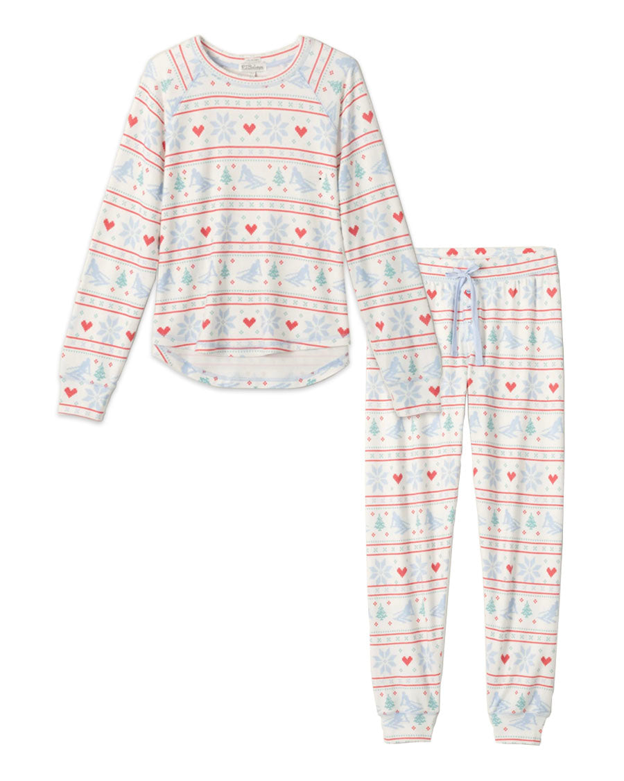 Embrace the spirit of winter with exclusive jammie set featuring a playful ski themed pattern. The soft fabric ensures all day comfort, while the stylish design makes it perfect for cozy nights at home or festive gatherings. Enjoy a relaxed fit that keeps you warm and stylish during the colder months.