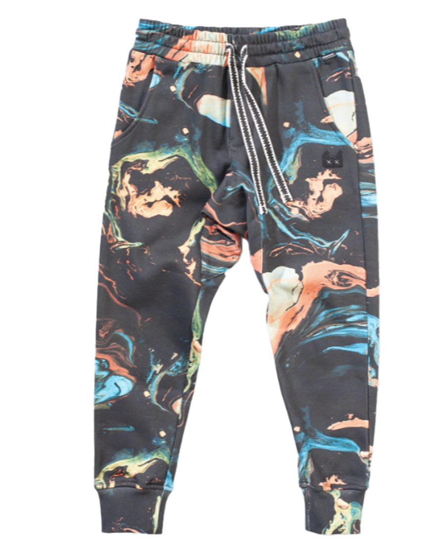 100% Cotton 310Gsm Unbrushed Fleece Track pant w/ Digital Swirl Print