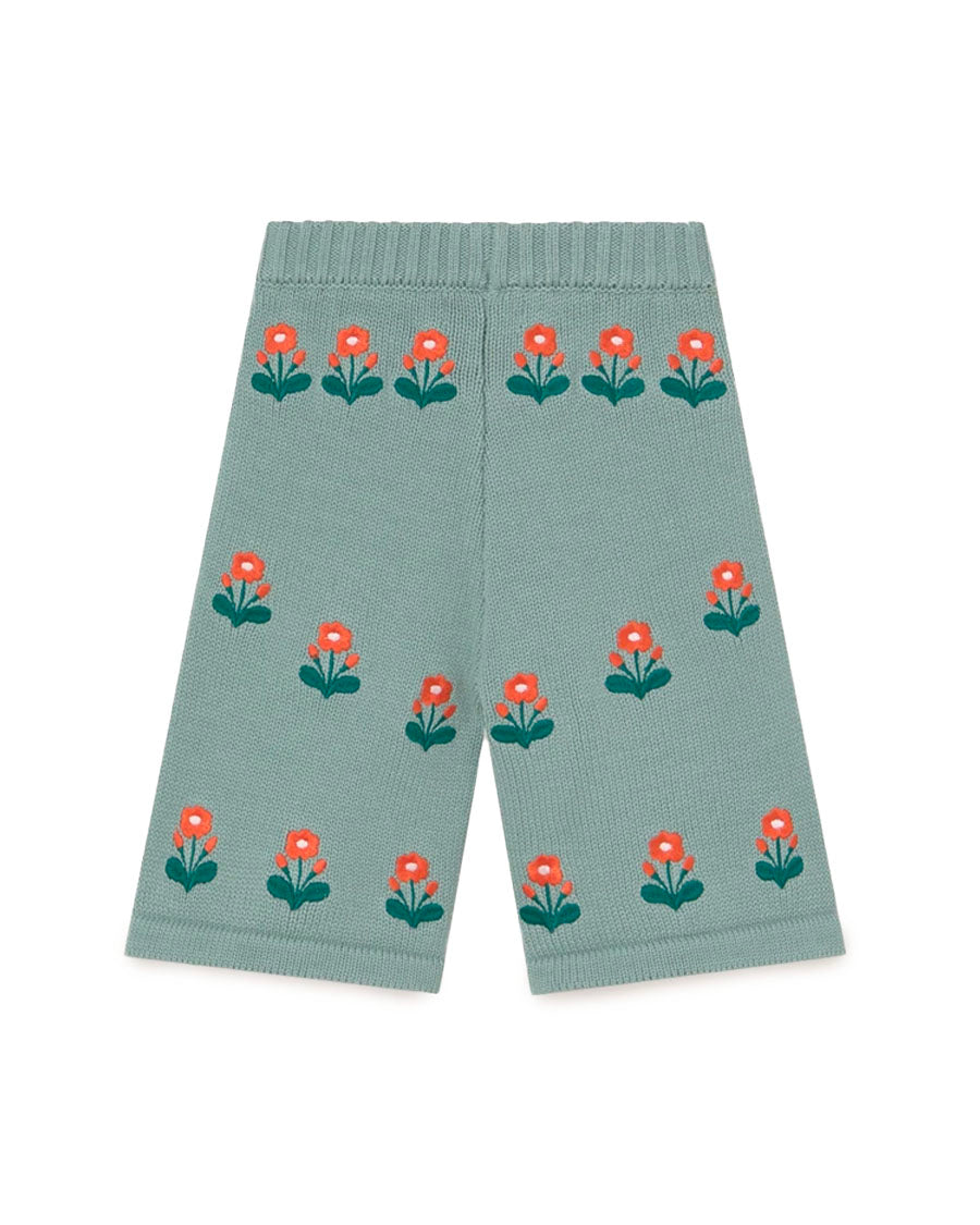These embroidered flowers baby knit pants, crafted from a soft cotton and wool blend, add a playful touch to any little wardrobe. The elasticated waistband ensures a comfortable fit, while the straight-leg silhouette allows for easy movement. Perfect for playtime or naps, they combine cozy warmth with stylish ease.