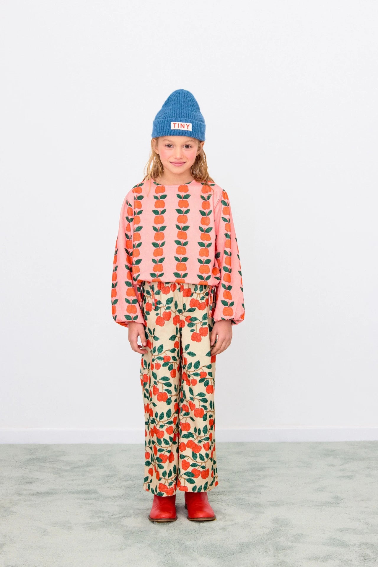 These Apples print trousers are crafted from soft 100% cotton corduroy fabric. They feature a relaxed straight-leg silhouette, an elastic waistband for easy wear, and practical pockets, combining style and comfort effortlessly.