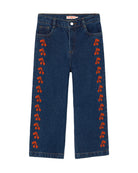 Our 5-pocket Cherries embroidery straight pants offer timeless style with a modern twist. Made from soft 100% cotton, these pants feature a relaxed straight-leg fit, a practical 5-pocket design, an adjustable waistband, and a snap button fastening. The versatile silhouette makes them perfect for both casual and dressed-up looks. Comfortable, stylish, and easy to pair, these pants are a wardrobe essential for every day.