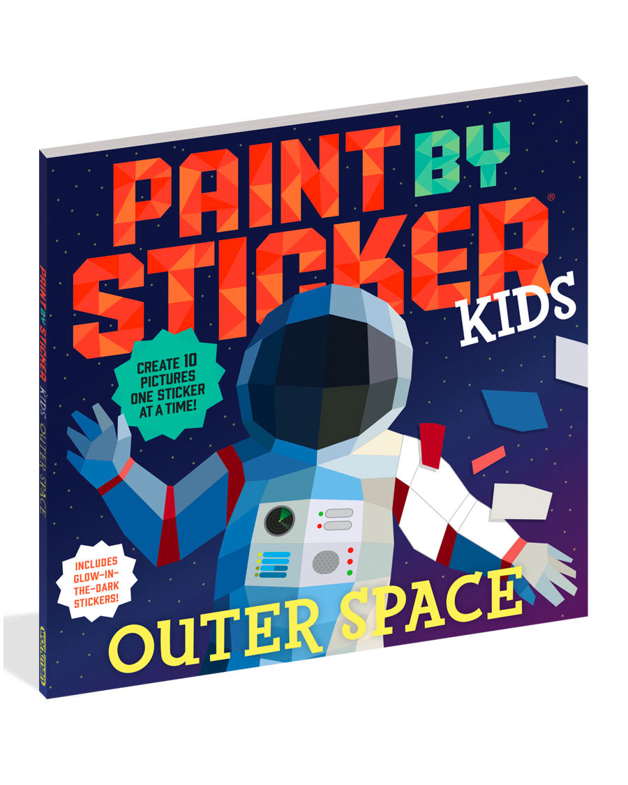 Blast off into outer space with this mess-free sticker craft!Includes everything you need to create ten sticker paintings on sturdy card stock. Kids will love stickering a Mars rover, a space shuttle, an astronaut, iconic celestial bodies like Saturn, Jupiter, and the Sun, and more! Plus, the back of each image includes a fascinating scientific fact about each galactic subject. Includes glow-in-the-dark stickers!