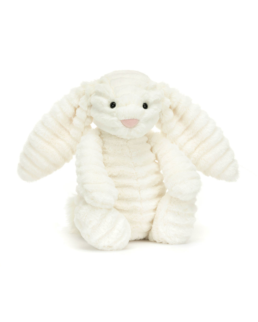 Is Bashful Luxe Bunny Nimbus a lop-eared bunny, or a fluffy cloudlet in disguise? Heavenly-soft in double-cream rumples, with glossy eyes, a silky tail and a dainty suedette nose, Nimbus is such a wonder.