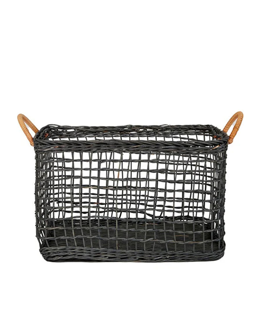 A must-have storage essential; the Rattan Cabouche Basket in Ink is handmade from 100% Natural Rattan and is complete with two sturdy rattan wrapped handles for toting ease! With a large open weave, this duo is sure to become your new go-to basket for just about everything. Made by Olli Ella.