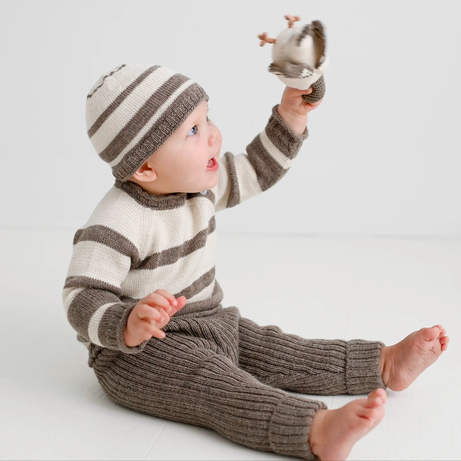 Inspired by our daily stroll through NYC's Madison Square Park, this familiar creature is the perfect size for little hands. Exquisitely crafted, using heirloom crochet techniques, this hand made rattle is made with 100% organic cotton. Its distinct stripes and vibe provide so much joy for all.