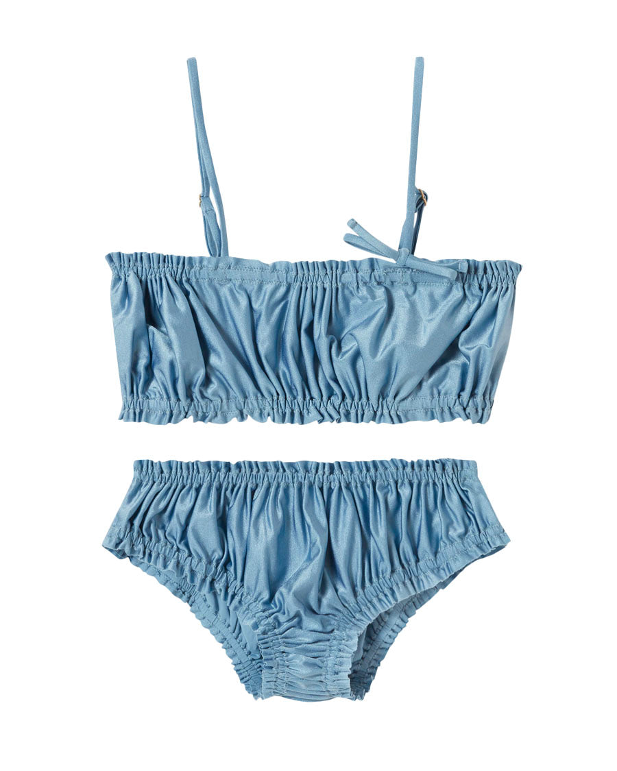 • All-over ruching and bandeau top add a playful and refined touch your child will enjoy