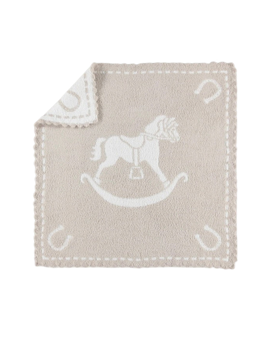 Barefoot Dreams CozyChic scalloped rocking horse receiving blanket is so soft and cozy. Bundle your bambino in this adorable, warm and cozy blanket. Featuring three special vintage designs.