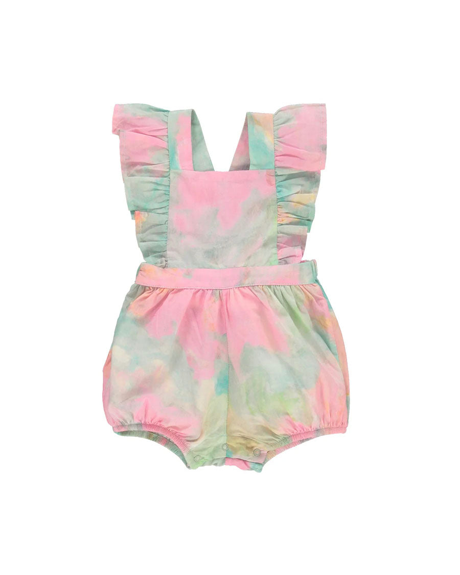 Forever inspired by a romantic dream world. Lovely Violetta romper is crafted from the lightest cotton fabric in a lovely signature print of the season - watercolour dreamworld print. Adorable romper features a square neckline, ruffled butterfly sleeves and an elastic waistline in the back and adjustable suspenders that close with a mother-of-pearl button in the back and snaps between legs for easy change.