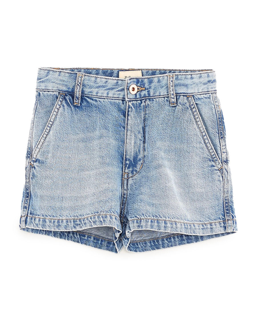 Regular denim shorts with a flat front and straight legs, made from striped cotton denim.