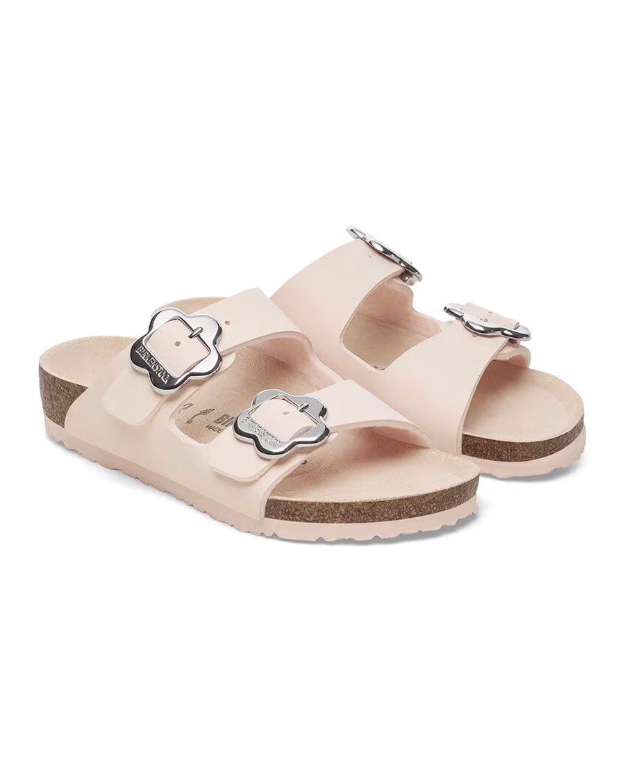 The BIRKENSTOCK Arizona is a genuine classic that has been delighting wearers with its timeless design for decades. The two-strap model fits kids’ feet perfectly – even during boisterous play! This version features fun floral buckles. The color-coordinated outsole rounds off the shoe’s look of sophistication. The upper is made from the skin-friendly, hard-wearing synthetic material Birko-Flor®.