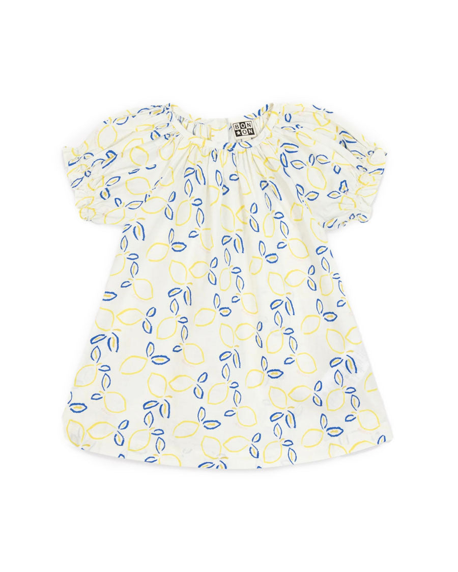 There Dress Dove Print Activated "Limone" is a real ode to lightness and Italy. With its vaporous cut, its short puffing sleeves, it invites you to spin under the summer sun! Made of tissur decorated with lemons with tangy and colorful keys, this Dress Breathe freshness and elegance. A room from the "Dolce Vita" capsule, inspired by the sunny atmosphere of Italy with a palette of sparkling and summer colors, mixing tones of Yellow pastel, limoncello and Blue mad. Of the Looks Fresh for summer evenings.